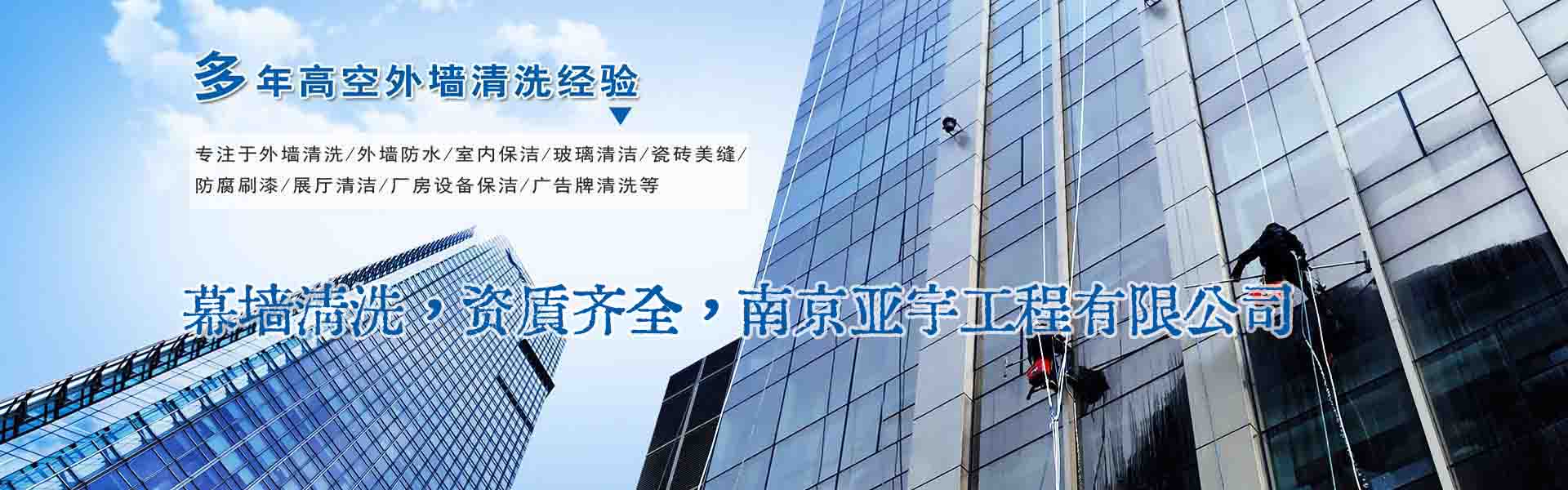 南京亞宇工程有限公司是專業提供:南京開荒保潔,南京外墻清洗,南京高空安裝,南京幕墻維修,外墻清洗、幕墻維修,防水防腐、外墻涂料翻新的南京工程公司。公司有著良好的培訓機制,每一位員工都經過嚴格的專業培訓,統一服裝、統一形象,提供給客戶專業優質的服務?,F有各種作業車多輛、保潔設備數十臺,保潔員以及各類技術人數十人。公司現有管理部門多個,保證24小時急時、周到、安全、快捷的為您服務。 我們秉持“顧客...